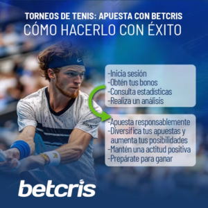 Como ya se mencionó, si eres un apasionado de los torneos de tenis y deseas añadir emoción a tu experiencia, las apuestas deportivas en Betcris Panamá te ofrecen la oportunidad de hacerlo. Aquí te explicamos cómo: